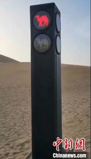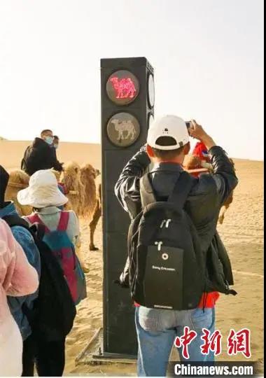 具有骆驼元素的交通信号灯首次亮相敦煌鸣沙山月牙泉景区,这也是目前所知的世界第一款专属骆驼的信号灯。王斌银 摄