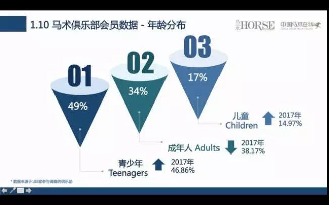马术俱乐部会员中占比第一的是青少年,其次是成人和儿童,女性会员占比持续增长并超过了65%,与法国目前马术产业发展现状基本一致,这也意味着小马驹俱乐部在中国的发展已经具备一定的市场基础。