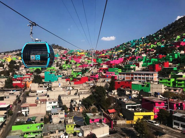 在墨西哥城,一条新多贝玛亚D-Line索道扩展了其城市交通系统。这条近10公里长的索道将乘客直接带到该市最大的交通枢纽Indios Verdes,在那里他们可以方便地换乘公共汽车和地铁。市长Dra.ClaudiaSheinbaum Pardo在谈到Cablebús 索道时表示:"对我们来说,索道不仅是一个交通项目,也是一个社会项目。我们迫切的希望为市民提供最好的出行环境。"乘坐舒适的10人吊厢,乘客不仅可以避开拥挤的地面交通,日常通勤时间也能减少一半。
