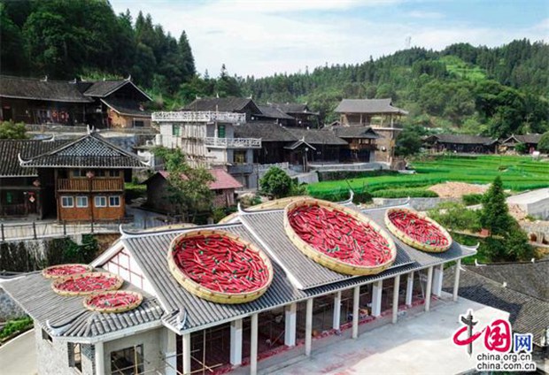 如今,雁鹅界已开发成了乡村旅游网红打卡地,长株潭和附近市县来此休闲度假的游客逐日增加。为了更好地传承红色文化,湖南雪峰山旅游公司根据红军长征时在雁鹅界古村落留下的感人故事和红色遗迹、遗物,专门打造了一栋红色文化展览馆,并在展览馆的屋顶上定做了8个世界上最大的簸箕,把当年红军留种下来、而今成为古村落及附近村寨致富产业的大红辣椒平铺其上,这既是红色教育的生动场景,又是云端古村落一道亮丽的风光。