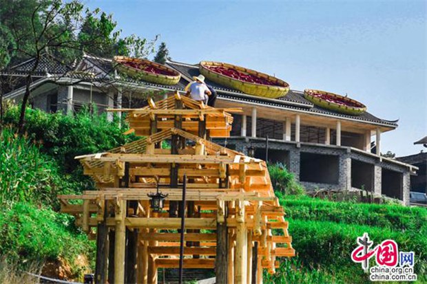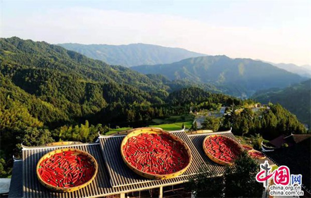“在一栋古色古香房子的屋顶上,放着8个巨大的簸箕晒红辣椒。”近日,位于湖南雪峰山旅游景区的穿岩山森林公园在微信朋友圈、视频号、抖音上刷屏,成为一个独具特色的网红打卡地,吸引了众多游客前来参观游玩。