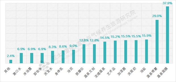 温泉购物:在温泉项目上,消费者更愿意买到与温泉水直接相关的产品,如面膜、喷雾、浴盐等;对于带一定功能性的产品,如漱口水、卸妆水、身体乳等,仍持谨慎态度。在消费价格方面,一次花费300元以下是一个比较能接受的区间。