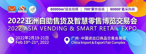 2022第十届亚洲自助售货及智慧零售博览交易会,将于2022年2月19-21日在广州·广交会展馆举办,规划面积80000平方米,预计将吸引超过700家展商参展,专业观众将达80000人次。聚焦自助售货、智慧零售、商业设备等行业领域,服务于全球采购商、经销商、运营商和参展商。