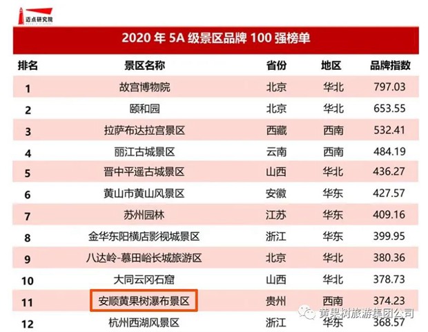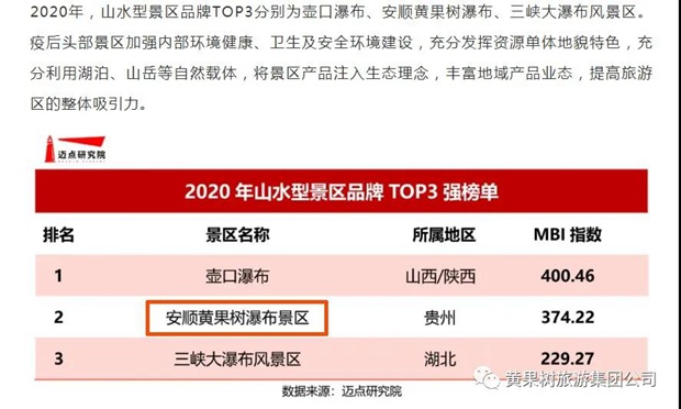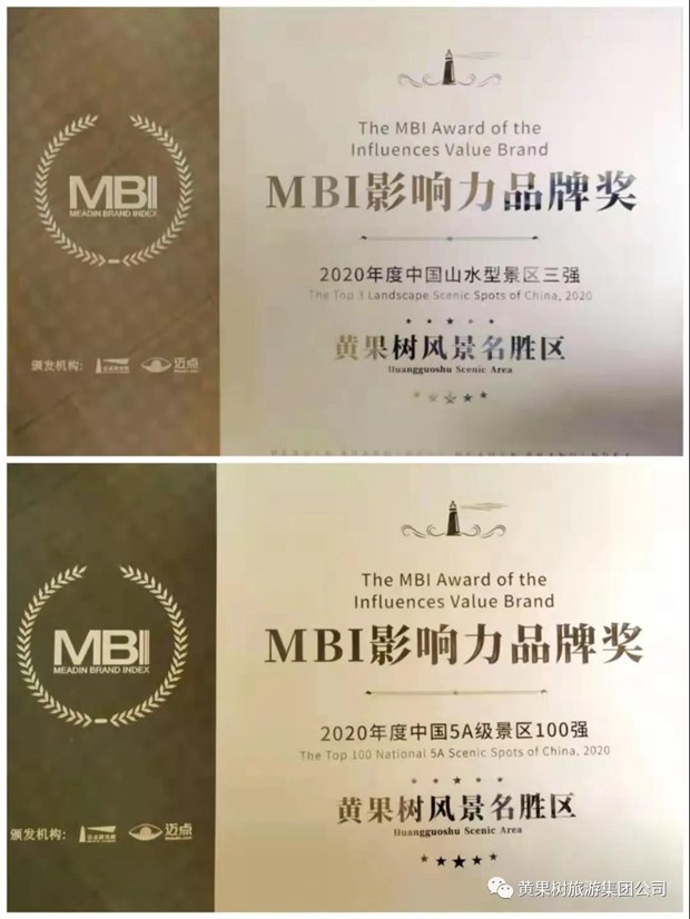 9月15日,由迈点研究院主办,迈点网等百家媒体联合承办的“文旅2020-中国文旅景区MBI品牌盛典”在杭州黄龙饭店举行,黄果树景区荣获“2020年度中国5A景区100强”、“2020年度中国山水型景区三强”。