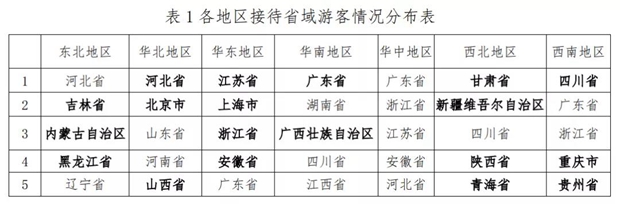 表2 各地区接待和客源城市分布情况表