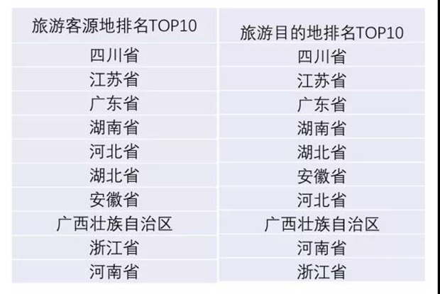 全国旅游客源地和目的地客流量呈现南高北低态势,省域旅游市场对本地经济的支撑作用明显。从全国旅游客源地和目的地排名情况(表3)进行分析可以看出,排名前十的旅游客源地和旅游目的地具有一致性,仅在排名位置上略有差别,体现出各省域旅游市场对本地经济的支撑作用。从排名上看,上榜省份主要集中在华东、华南和华中地区,北方城市仅河北一省上榜,四川、江苏、广东、湖南省域接待量和流出量均较高。