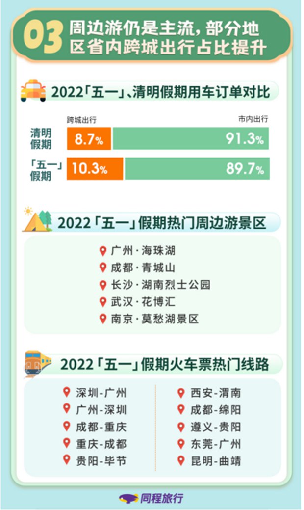 省内跨城出行占比提升,周边游仍是主流