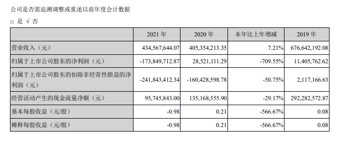 公告显示,2021年,三特索道实现营业总收入4.35亿元,较上年同期增长7.21%;归属于上市公司股东的净利润为-1.74亿元,较去年由盈转亏。