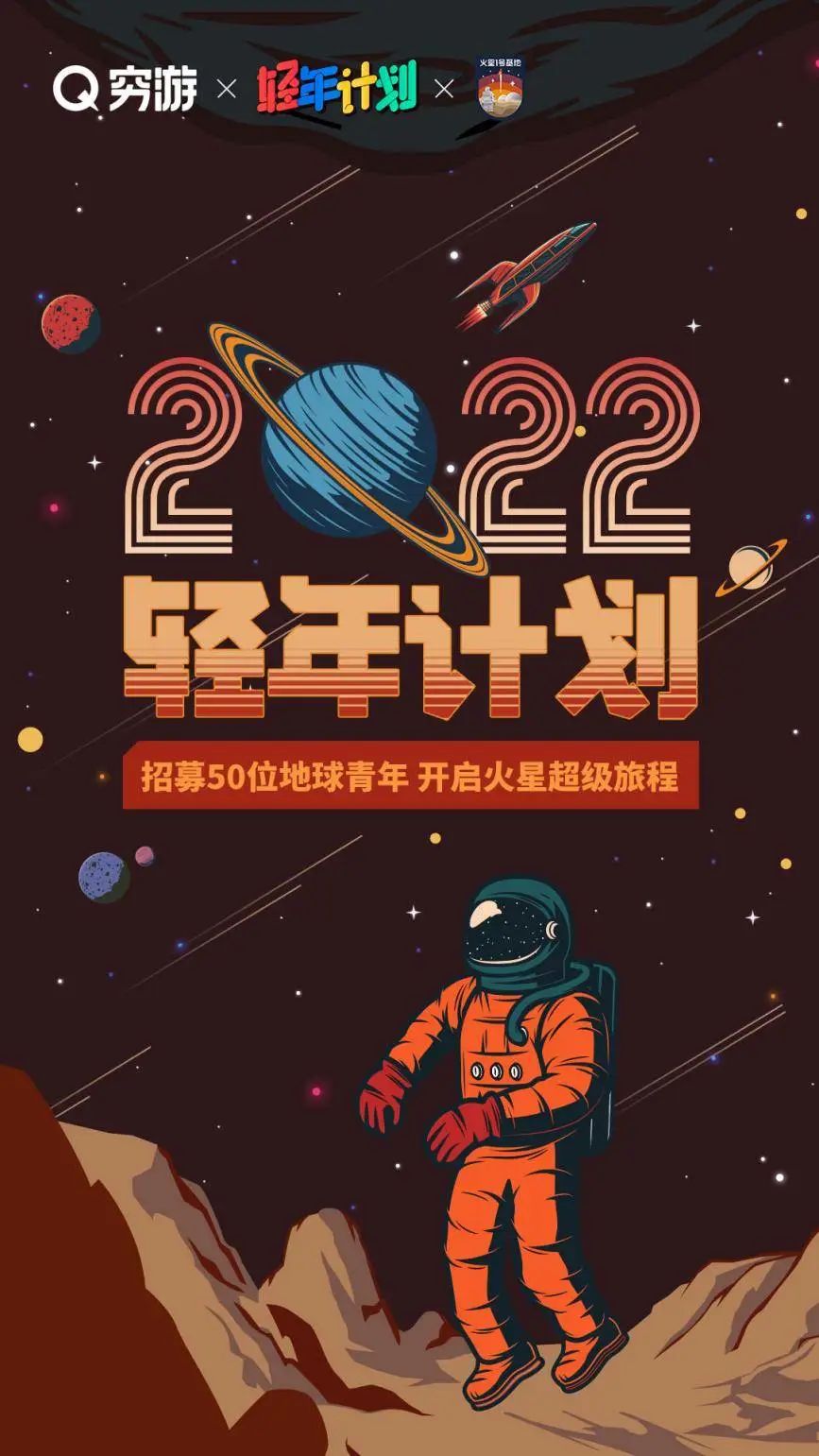 7月11日,穷游网携手火星1号基地(甘肃金昌)正式启动2022年“轻年计划”,招募50位地球青年免费体验3天2晚沉浸式“火星原住民”神秘之旅。同时,还有机会在火星1号基地实习,担任火星指令长、生物观察员、生活营养师等工作。