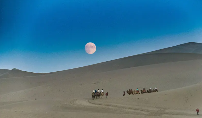 敦煌文旅集团鸣沙山月牙泉旅游发展有限公司副总经理王有霞介绍说,当地纬度较高,月亮仿佛触手可及,不仅可以通过借位可拍出“手可摘月”的大片,还能领略大漠孤月的别样风情,体验登高望月的古典浪漫。