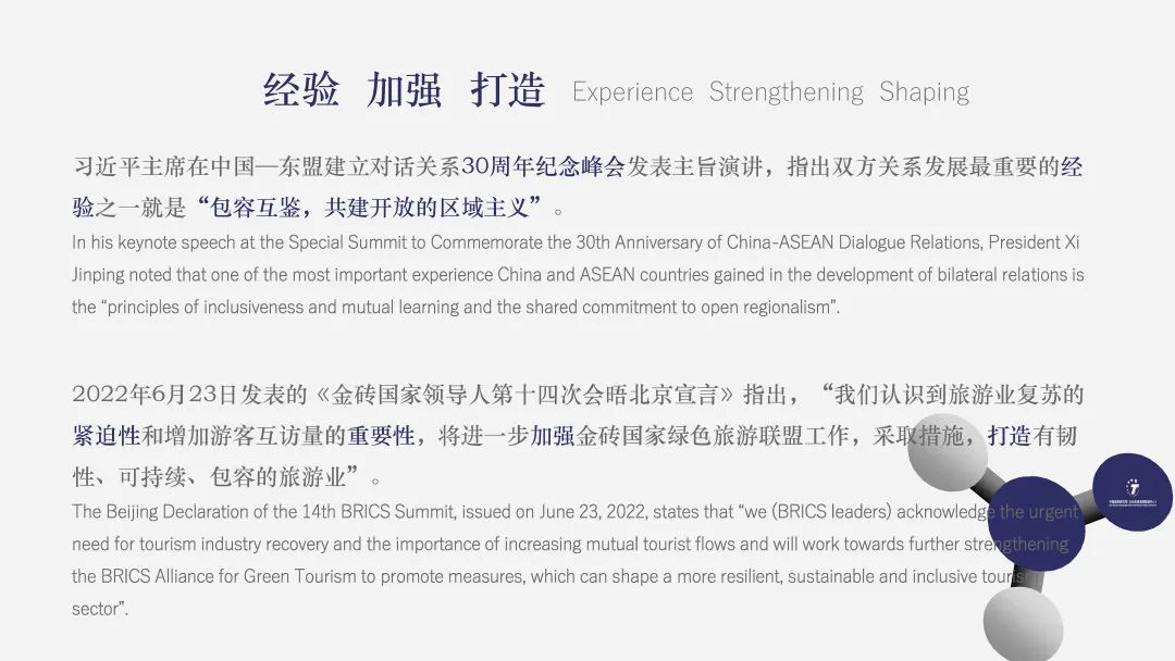 习近平主席在中国—东盟建立对话关系30周年纪念峰会发表主旨演讲,指出双方关系发展最重要的经验之一就是“包容互鉴,共建开放的区域主义”。由东盟发起,2020年11月正式签署并进入建设阶段的《区域全面经济伙伴关系协定》(Regional Comprehensive Economic Partnership, RCEP),作为世界上参与人口最多、成员结构最多元、发展潜力最大的自贸区,在世界各国经济增长普遍放缓的今天,为疫后复苏和地区繁荣带来了新动力,成为扩大旅游交流,深化旅游合作提供了全新机遇。