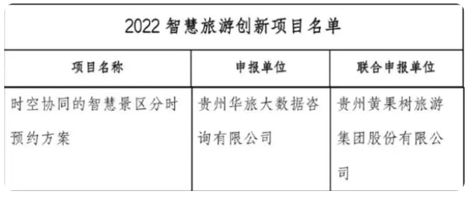 日前,“2022智慧旅游创新企业和项目”名单揭晓,全国共有10家企业入选“2022智慧旅游创新企业”名单,20个项目入选“2022智慧旅游创新项目”名单。其中,黄果树景区的《时空协同的智慧景区分时预约方案》入选“2022智慧旅游创新项目”名单。