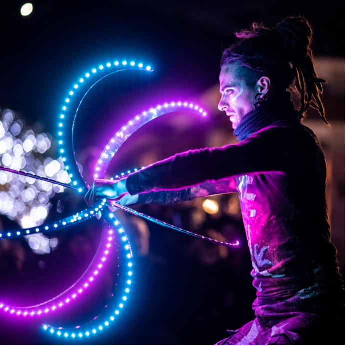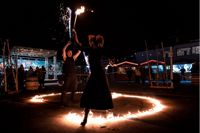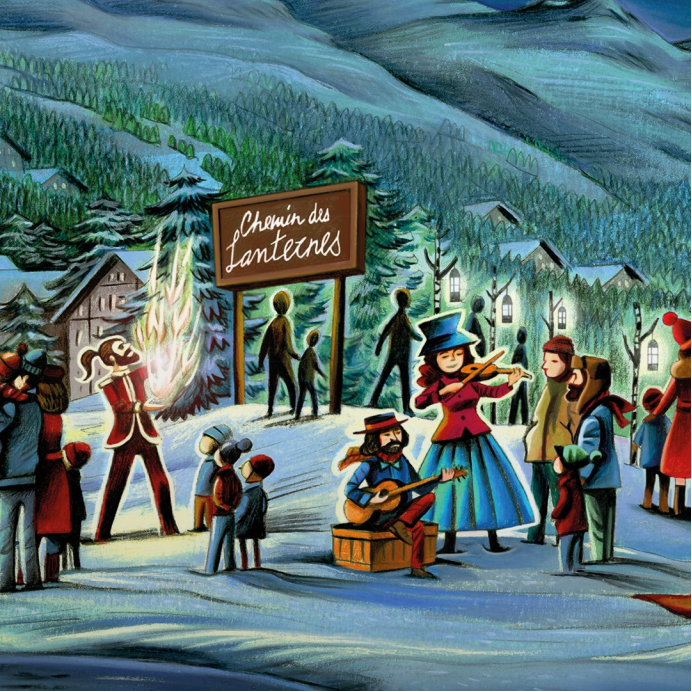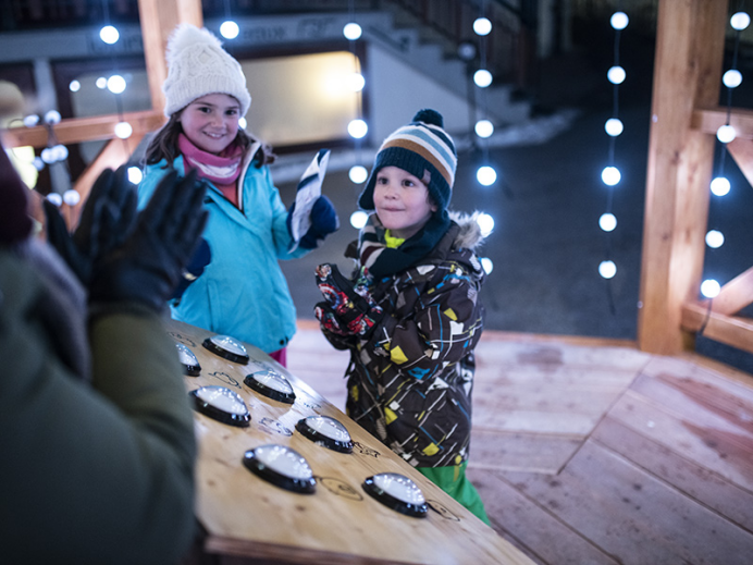 游客们通常在体验完雪地徒步后会聚集到小镇的中心,这里有最热闹的新年集市、可俯瞰整个小镇的摩天轮、创意的舞蹈表演、美妙的音乐会、令人眼花缭乱的美食小木屋……甚至在广场的大帐篷里还有为孩子们特别准备的手工作坊,孩子们可以尽情创作,家长们可以在一旁品尝美食美酒,各得其乐。