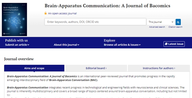 Brain-Apparatus Communication:A Journal of Bacomics(脑器交互国际期刊) 是一本国际同行评审期刊,由电子科技大学与国际知名学术出版集团Taylor&Francis联合创办,旨在促进迅速崛起的脑器交互跨学科领域的发展。