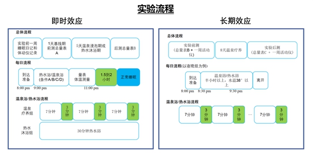 课题组面向社会招募33名睡眠障碍志愿者,随机分为下午沐浴组(AG)和晚上沐浴组(EG),开展为期10天的温泉泡浴实验。