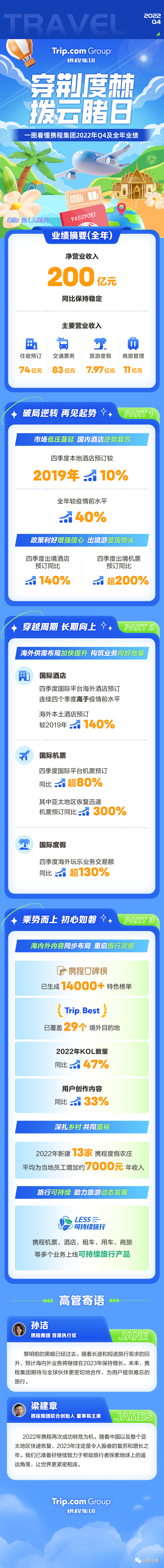 “疫情限制的解除和国家边境的重新开放是全球旅行和携程业务复苏的重要推动力。我们将保持精细化运营,继续提高效率,并投入未来机遇。”孙洁表示。