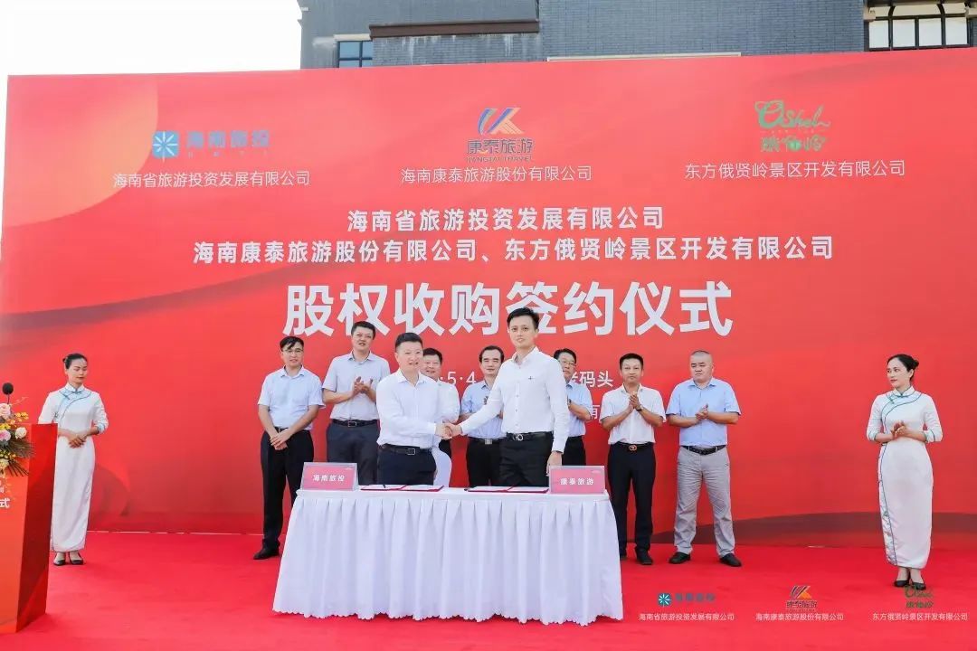 5月4日下午,海南省旅游投资发展有限公司股权收购海南康泰旅游股份有限公司、东方俄贤岭景区开发有限公司签约仪式在海口举行。省国资委副主任王晓桥,省旅文厅党组成员、副厅长王忠云出席签约仪式并证签。
