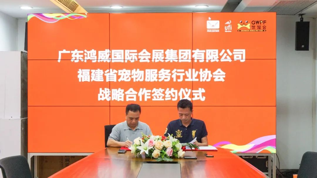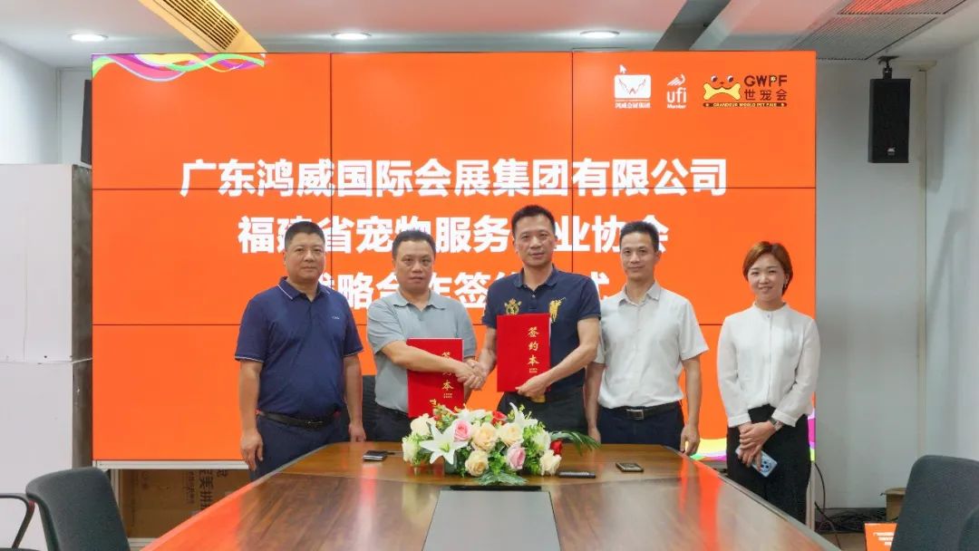 5月16日,广东鸿威国际会展集团有限公司与福建省宠物服务行业协会在鸿威总部举行战略合作签约仪式。双方就未来在鸿威•世界宠物博览会(GWPF)厦门展、中国小宠异宠发展论坛、国际小动物临床兽医师大会等活动上达成深度战略合作,共同打造中外学术、产业交流平台。