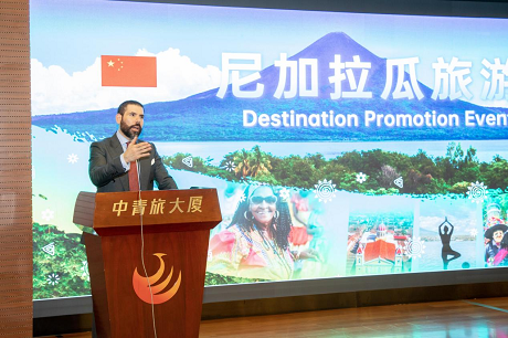 活动中,劳雷亚诺首先代表尼加拉瓜总统及总统夫人向大家致以亲切问候,并围绕自然、文化、美食、基础设施等多维度对尼加拉瓜丰富的旅游资源进行了全方位推介。他表示,中尼两国有着兄弟情谊,是战略伙伴。旅游是尼加拉瓜的支柱型产业,尼方愿与中国文化和旅游部等旅游主管机构,以及以中青旅为代表的广大中国旅游企业建立联系、加强探讨,为中方提供丰富的旅游产品和服务,吸引更多中国旅客到访尼加拉瓜。