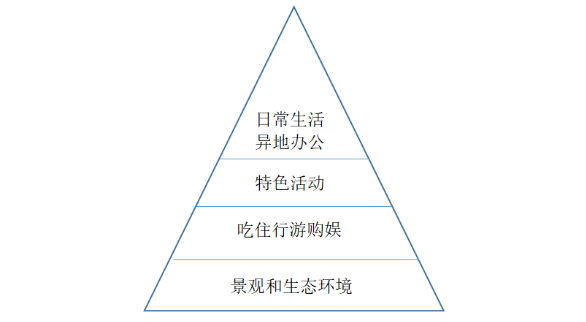 《报告》认为,度假产业体系是“美好生活,主客共享”产品和服务的总和。和观光旅游发展重在打造景区不同,度假产业发展要为旅游者提供一段与常规生活不一样的品质生活,对于目的地的景观和生态环境、基础设施和公共服务、接待体系和活动内容、商业体系和人文环境等有着更高的要求。报告提出,景观和生态环境是包括度假在内的旅游活动的重要基础,构成度假产业体系的底层;吃住行游购娱是包括度假在内的旅游活动的主要内容,构成度假产业体系的骨干;满足旅游者度过假期需要的各类特色活动,如美食、康养、音乐、戏剧、温泉、滑雪、登山、徒步、冲浪、潜水、自行车运动以及各种赛事、集会等,构成度假产业体系的核心;由于度假旅游者逗留时间较长延伸出来的其他“生活”需要,如医疗保健、美容理发、健身美体、异地办公等,构成度假产业体系的重要拓展。