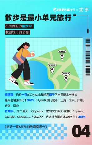 随着体验感和松弛心态的风靡,均价一百的Citywalk也成为潮流。携程平台上Citywalk热门城市包括上海、北京、广州、青岛、西安,在知乎平台上,这个夏天「Citywalk」被知友们也玩出Cityrun、Cityride、Cityeat等不同花样。