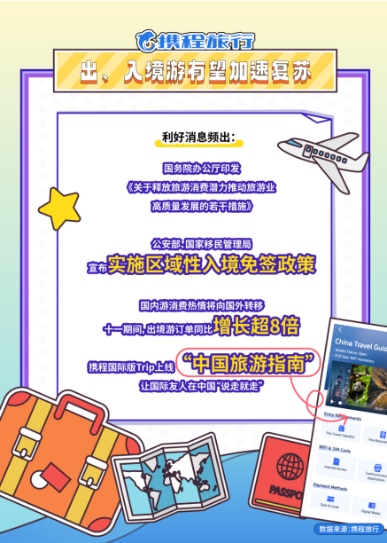 入境游方面,携程国际版Trip前不久上线“中国旅游指南”,包含酒店预订、旅行建议、交通出行、支付方式、热门目的地等多个板块,让外国友人可以像中国人一样一键买门票、订酒店,感受中国旅游、消费的方便快捷。