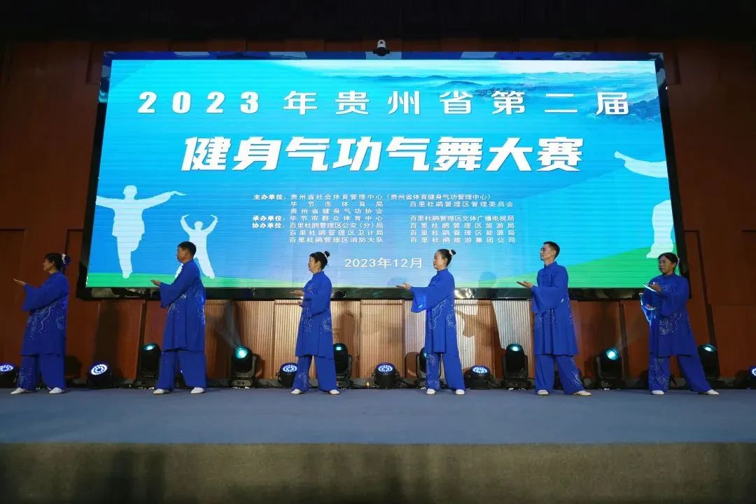 2023年贵州省第二届健身气功气舞大赛在百里杜鹃管理区举办。本次赛事由贵州省社会体育管理中心(贵州省体育健身气功管理中心)、毕节市体育局、百里杜鹃管理区管理委员会、贵州省健身气功协会主办,毕节市群众体育中心、百里杜鹃管理区文体广播电视局承办,来自全省各市(州)13支代表队、100余名健身气功气舞爱好者参加比赛。比赛现场,参赛队员们身穿整齐的服装,伴着或柔和缓慢,或轻灵舒展的乐曲,一招一式充分展示出健身气功的特点与魅力,为现场的评委、嘉宾和观众呈现一场精彩纷呈、美轮美奂的视听盛宴。