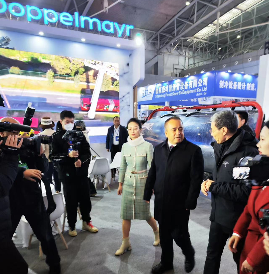 12月26日,为期5天的第十七届新疆冬季旅游产业交易博览会正式闭幕。作为特邀嘉宾,此次多贝玛亚展出了性能极佳的OMEGA V吊厢及DCD 8人/6人吊椅。展览期间,多贝玛亚展位上人头攒动,吸引了众多的观众前来参观体验!22日上午,新疆维吾尔自治区党委副书记、区政府主席、党组书记艾尔肯·吐尼亚孜专程来到多贝玛亚展台,对全球顶尖索道产品来疆展示表示欢迎,并表达了对国际一线索道设备入驻新疆的希冀。