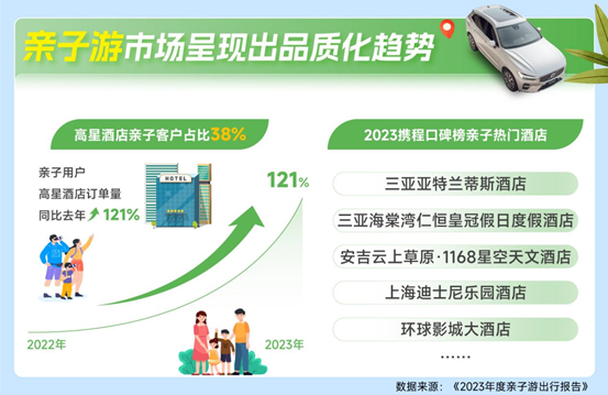 根据携程数据显示,2023年订购高星酒店的用户中,亲子用户占比为38%;亲子客户高星酒店订单量也同比去年增长121%;携程口碑榜奢华酒店榜的月均浏览量同比增长148%。在享受家庭集体旅行的同时,亲子用户也更关注出行体验的质量和品质。