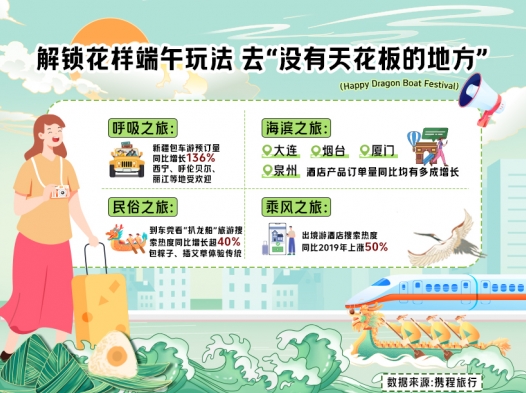 端午假期的玩法则可以分为呼吸之旅、海滨之旅、民俗之旅和乘风之旅。