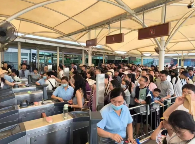 同时,景区始终保持严谨稳重的态度,运用科学化的客流监测管理和精细化的调控策略,对客流道路进行及时疏通与调控。时值暑期旺季,景区针对多雨天气,积极做好温馨提示工作。通过景区LED大屏、公众号和媒体等多渠道进行实时播报,为游客提供及时准确的客流和天气信息,确保了游客的安全与游玩体验。