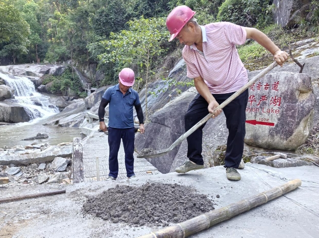 工人正在梵音古道抢修(彭锦荣 供图)