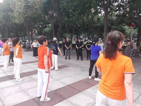 (中国老年人体育协会主席雷军在运城市体育公园观看大众拉筋操展演)