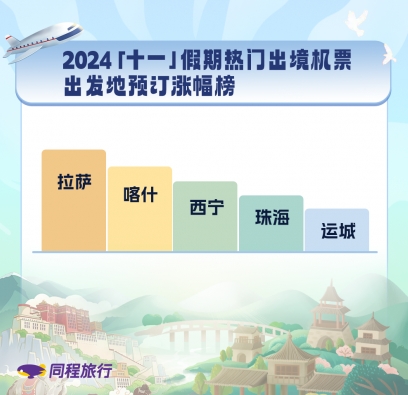 值得关注的是,今年“十一”假期期间,前往这些长线游目的地的游客中有了更多县城和小镇居民的身影。这些旅游消费中的“奢侈品”,也成为县城居民们可以享受的旅行生活。同程旅行数据显示,在长线出境游消费者中,三线及以下城市居民占比超过40%,相关产品预订热度增长超2倍。拉萨、喀什、西宁、珠海、运城等二三线及以下城市假期期间的出境机票预订热度涨幅超过其他一线和新一线城市,为出境游市场带来新的增长点。