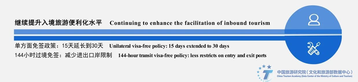 继续提升入境旅游便利化。在签证、支付、住宿登记、票务预订、多语种服务、离境退税等方面继续探索政策制度创新,进一步提高入境游客来华旅行便利度。在签证便利化方面,面向年假时间普遍较长的远程客源市场,建议将单方面免签政策的停留时间从15天延长至30天。进一步发挥144小时过境免签政策的辐射效果,降低外国游客理解以及国内执行该政策的难度,建议允许过境游客A口岸进B口岸出,不再单独规定停留区域。