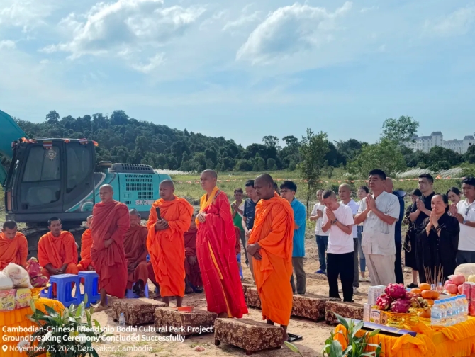 2024年11月25日,在风景秀丽的柬埔寨七星海,滨海城市发展集团隆重举行了柬中友好菩提文化园大菩提寺和菠萝岛两个项目的开工仪式。这两个项目不仅是七星海发展上的重要里程碑,也是中柬两国文化交流与合作的新桥梁。