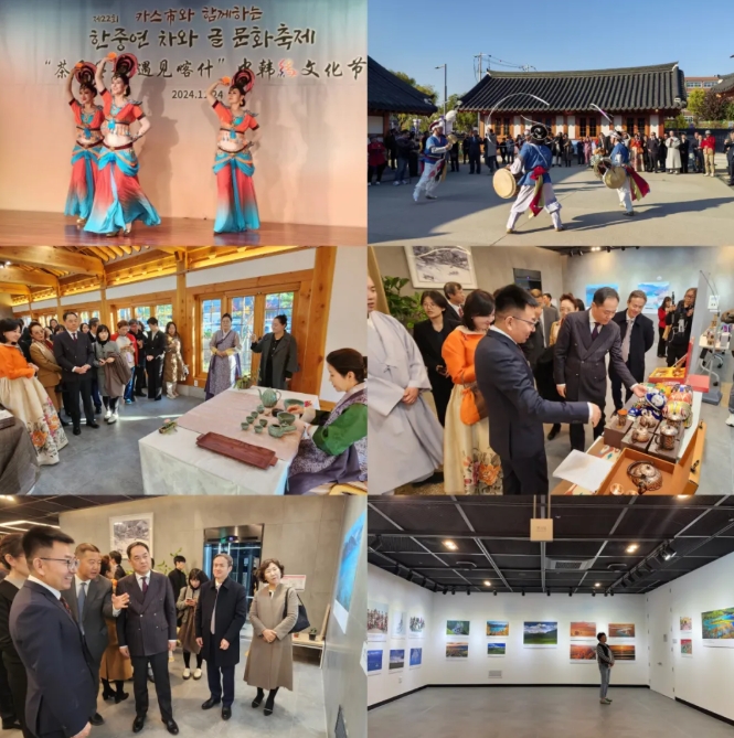 11月24日,由中国人民对外友好协会、韩中文化友好协会共同主办的“茶香墨韵,遇见喀什”中韩缘文化节在韩国水原市成功举办。中国人民对外友好协会会长杨万明、驻韩使馆公使衔参赞沈晓刚、韩中文化友好协会会长曲欢、中日韩合作秘书处秘书长李熙燮、韩国佛教曹溪宗德云法师等出席。中共新疆维吾尔自治区喀什地区宣传部长窦雪梅率经贸文化代表团参加相关活动。来自韩国政治、经济、文化等各界人士近200人参加。