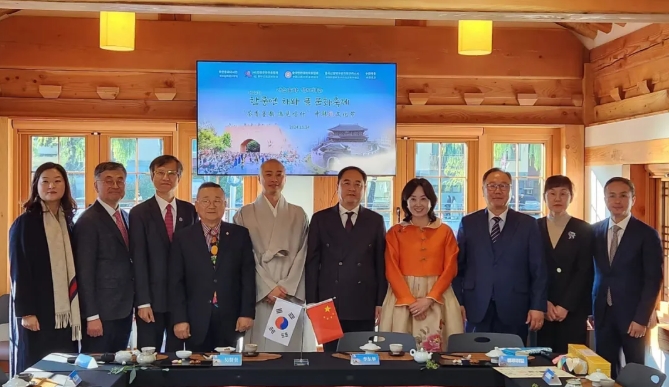 曲欢会长感谢杨万明会长率团来访,表示愿同中国人民对外友好协会保持紧密合作,继续深化在经济、人文、佛教、青少年等领域的交流与合作,为增进韩中两国人民间相互了解、友谊与互信贡献民间力量。