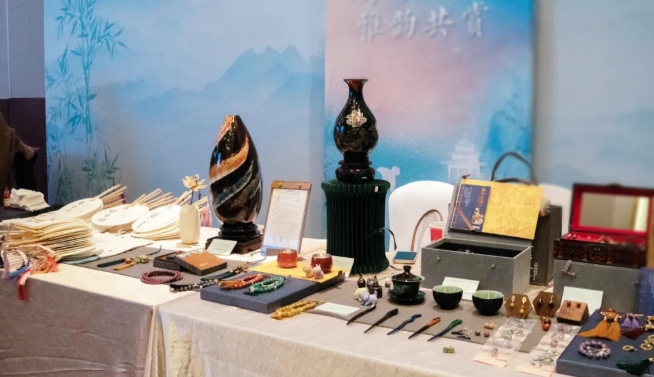 活动在江南经典名曲《钱江潮》的悠扬曲乐声中徐徐拉开帷幕,古筝与琵琶的和鸣演奏气势恢宏,充分彰显了浙江文化的深厚底蕴。围绕“秀景江南 雅韵共赏”这一主题,推介会为在场嘉宾生动描绘出“诗画浙江”的秀丽神韵。期间穿插的三段精彩视频分别从“鉴”“品”“赏”三个维度,鲜活地展示了浙江古韵悠长的非遗文化、丰富多元的珍馐美食以及如诗如画的人文景观。在文旅知识竞猜环节,嘉宾们踊跃参与互动,加之精彩的主题推介内容,为当地旅行商开启了一扇深入了解浙江文旅资源的窗口。展览区内,诸多精美的非遗珍品吸引了众人目光,柳叶瓶、脱胎漆盘、螺钿花瓣碟等极具浙江风雅韵味的艺术精品收获了嘉宾们的广泛赞赏。