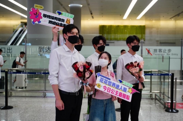 据介绍,在上海虹桥机场的 P6/P7会合服务点,同程旅行可以为旅客提供惊喜服务,“粉丝可以在线上预约花式接机,可以订制自己想要的文案和照片外,还能定期许愿翻牌,有洛丽塔接机、男模接机、旗袍接机等等,让旅客到达机场后有不一样的出行体验”。