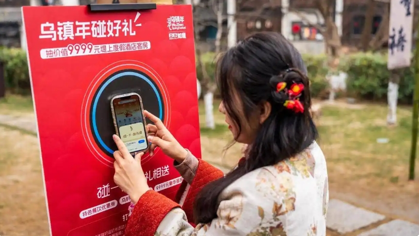 在江南古镇旅游热潮中,乌镇不断将传统文化与现代科技融合,与时俱进推出智能体验活动。景区推出"碰一下集章"数字互动,在乌镇西栅景区指定点位用手机碰一下活动芯片,即可开启任务窗口。参与体验AIGC美图合成照片,带话题#乌镇春日影像诗发社交平台即可参与抽奖,这种独特的打卡互动方式,不仅让游客在参与活动的过程中感受科技的魅力,还能留下独一无二的乌镇春日记忆。