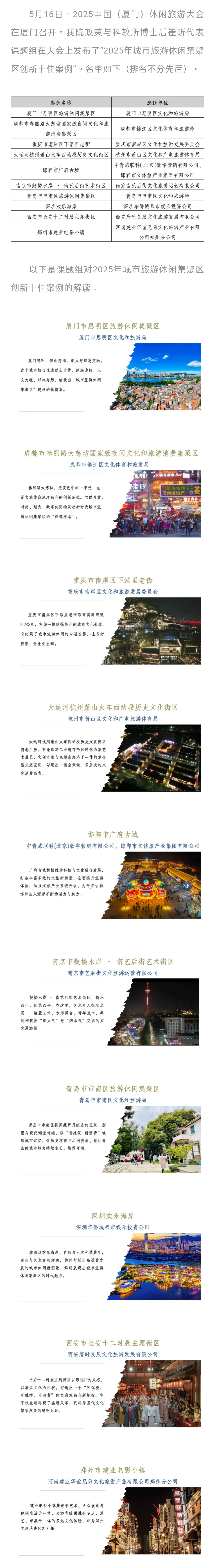 中国旅游研究院发布2025年城市旅游休闲集聚区创新十佳案例