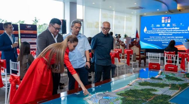 2025年6月30日,一场标志着滨海城市发展集团与VET深度战略合作的签署仪式在金边展厅盛大举行。此次签署的两项合作协议,主要内容包括VET集团在七星海的首个100公顷开发项目和VET AIRWAYS项目(七星海国际机场水上飞机和飞行学校),旨在推动文化旅游与航空领域的创新发展,为柬埔寨的经济多元化注入新动力。滨海城市发展集团董事长李梦晨先生、VET集团主席Neak Oknha Suo Vireak阁下,双方团队及媒体代表共同参与。