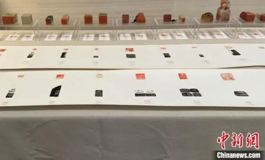 现场,一幅“印说浙江”卷轴引起围观,浙江省11个地市极具辨识度的文化符号、自然景观跃然纸上。其中,作为重点呈现的“印说宁波”一展深厚底蕴——天一阁的墨香书韵、宁波舟山港的巨轮剪影、七千年河姆渡“双鸟朝阳纹”、现代地标宁波中心大厦等吸引观众拍照打卡。