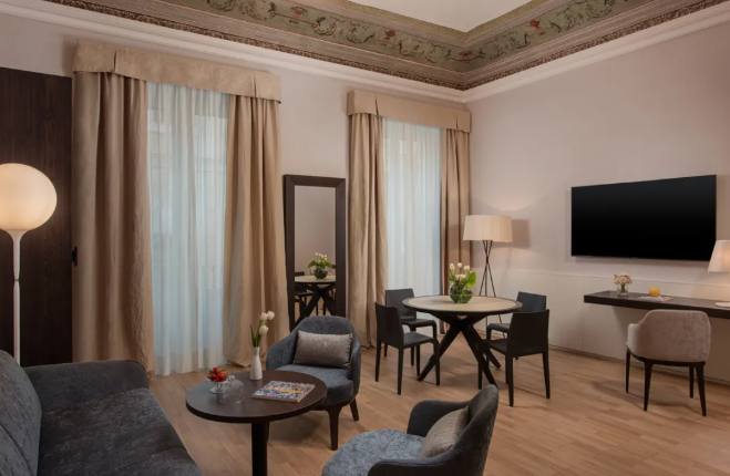 酒店前身为18世纪的西塔诺宫殿,由三栋贵族宅邸融合而成,原始的巴洛克装饰、手绘天顶壁画、古典铸铁阳台与恢宏的拱廊结构在改造中被悉心保留。走进大堂,古老与现代的交织扑面而来,仿佛穿越到几个世纪前的巴勒莫。每一处细节都诉说着往昔的辉煌,同时与现代舒适体验相得益彰。
