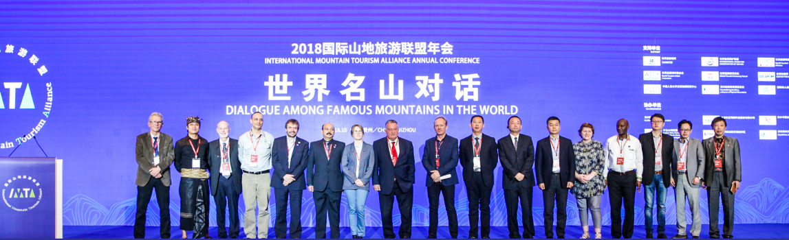 2018年10月13日,“世界名山对话会”在贵阳国际生态会议中心举办。作为2018国际山地旅游联盟年会的亮点议程,联盟会员代表、15位国内外名山目的地机构代表、旅行商、OTA等约200人参加本次“世界名山对话会”,围绕山地生态保护与合理利用,造福山地民众与可持续旅游发展等进行推介、对话交流。