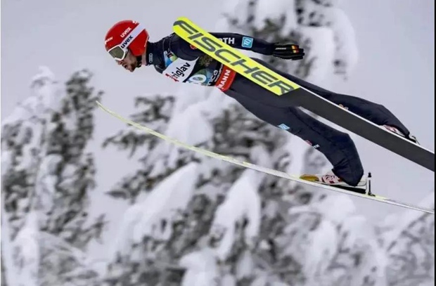 跳台滑雪又称雪上滑翔机、跳雪、飞雪,起源于挪威,是利用滑雪板沿跳台下滑跃入空中飞行一段距离的一项运动。1860年挪威德拉门地区的两位农民在奥斯陆举行的首届全国滑雪比赛上表演了飞跃动作,后逐渐成为独立项目并得到广泛开展,1924年被列入首届冬季奥运会比赛项目。