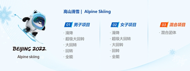 本届冬奥会,高山滑雪个人项目设10个小项。男、女分设滑降、超级大回转、大回转、回转和全能