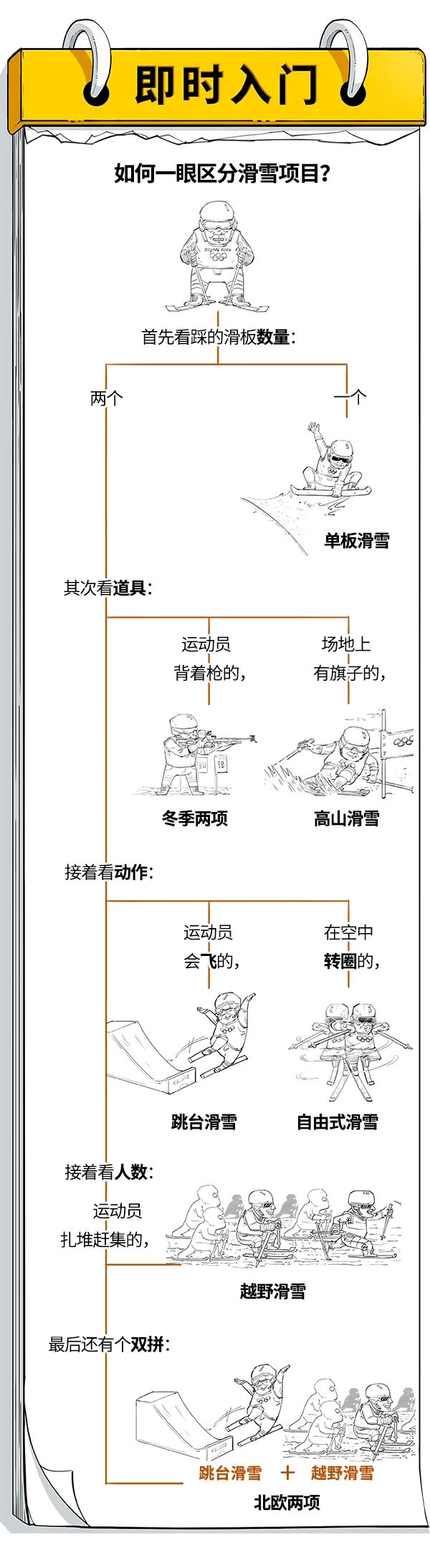 最后,如果还是分不太清楚高山滑雪和其他滑雪项目的,还是请混子哥给大家科普下: