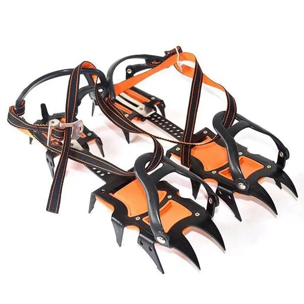 冰爪是一种附着在鞋类上的牵引装置,通常由金属制成,可提高攀冰过程中冰雪上的机动性。除攀冰外,冰爪还用于在冰和雪上安全行驶,例如穿越冰川,雪原和冰原,上升的雪坡和覆冰岩石。